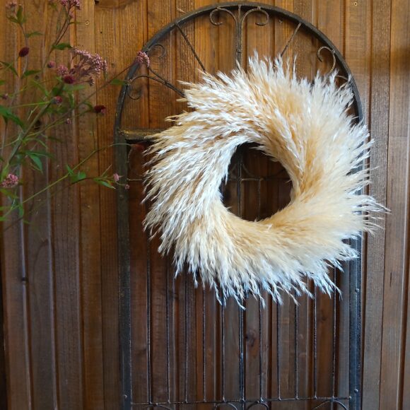 ふわふわのパンパスグラスを使って、リースをつくります。
