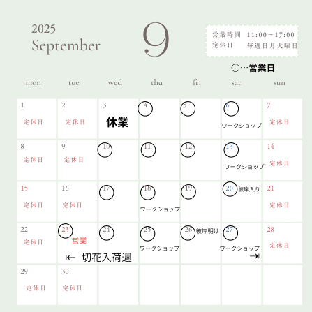 9月のスケジュールのお知らせ