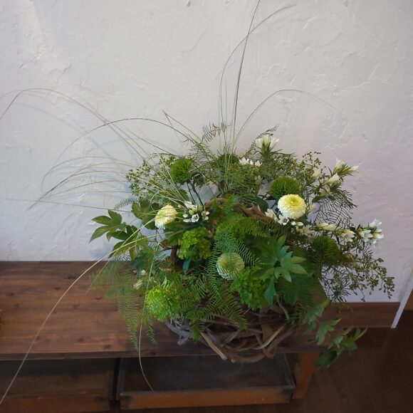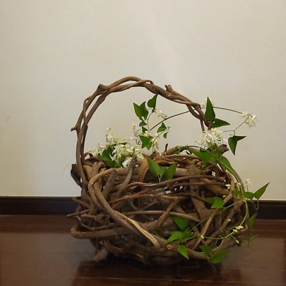 くずの大きなカゴに活けました