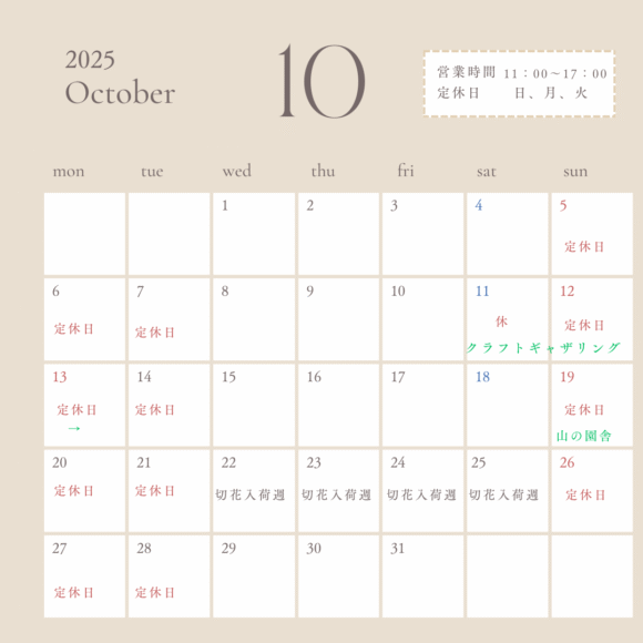 10月のスケジュールとイベント出店のお知らせ