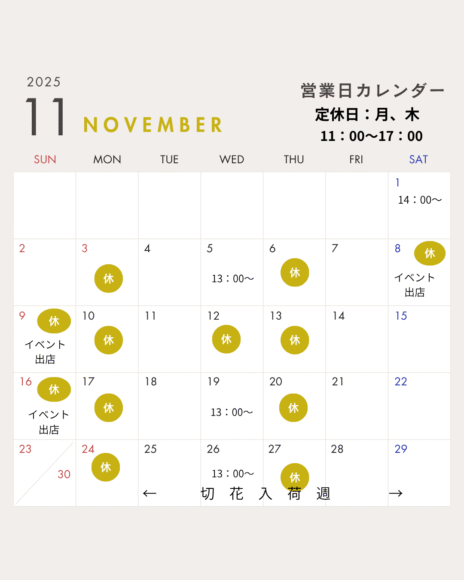 11月のスケジュールと営業日変更のお知らせ
