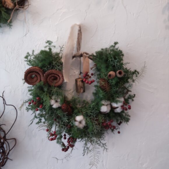 クリスマスのリース、スワッグつくりました。来週いっぱい販売予定です。