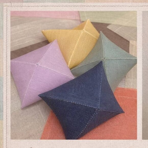 ポジャギのお店「Home.」です。韓国の布を使って、パッチワークのように布を縫い合わせて、大小のタペストリーやコースター、針山などの布小物を作っています。